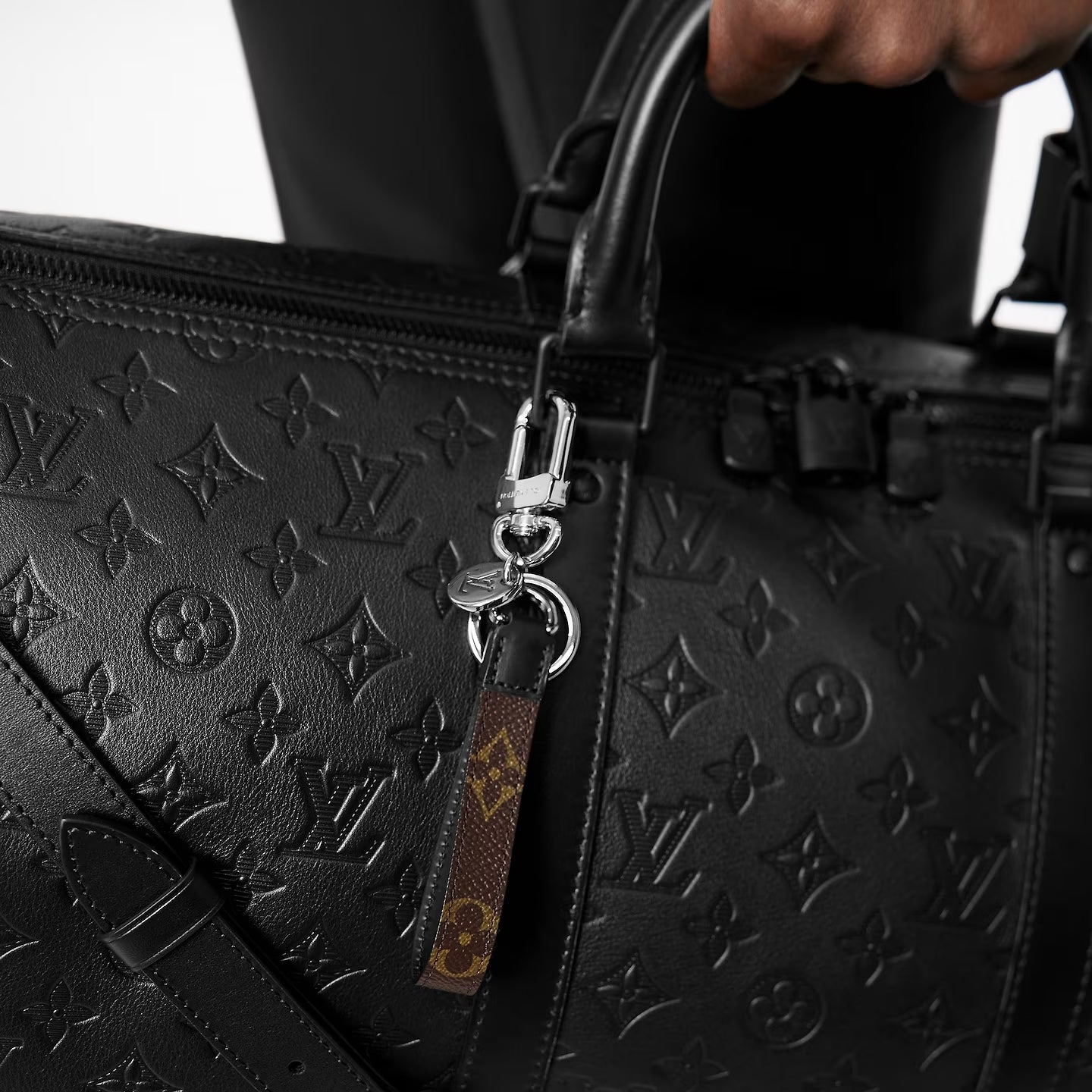 Monogram-embossed leather briefcase